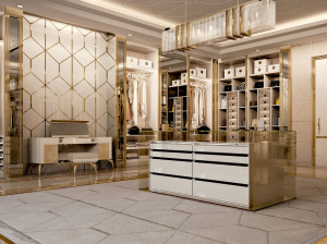 Модульная деревянная и стеклянная гардеробная со встроенным освещением