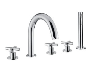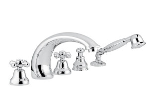 Однорычажный набор для ванны с 4 отверстиями и ручным душем