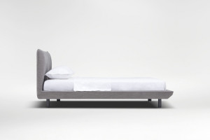 Регулируемая по высоте кровать из ткани с мягким изголовьем
