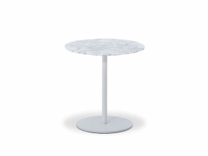 Круглый стол с мраморной столешницей и основанием из искусственной кожи
