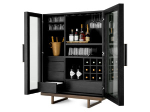 Деревянный и стеклянный барный шкаф