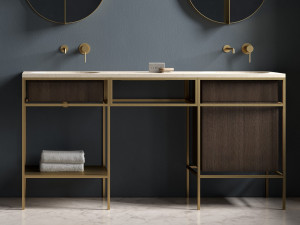 Ex.T Frame Мебель для умывальника из латуни с дубовым шкафом composizione gl1bronzo 1