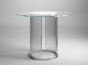 Высокий круглый стол из стали и стекла