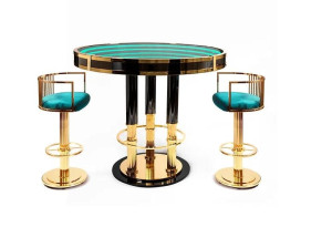 Круглый стол из латуни и стекла