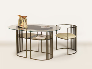 Овальный стол из стали и стекла