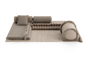 Коллекцию войлочных ковров и пуфов, разработанную Патрисией Уркиолой, в которой восстанавливаются даже отброшенные волокна этого материала, в результате чего получается сочетание линий и цветов, напоминающее камень. Оригинальность использования материалов также является отличительной чертой Mix & Match, подноса для стола, созданного бразильским керамистом Флавией Дель Пра, в котором используется алюминиевая основа с керамическими вставками. Доступны девять эксклюзивных моделей трех разных размеров, все 100% ручной работы, они сочетают в себе элегантность и практичность.
