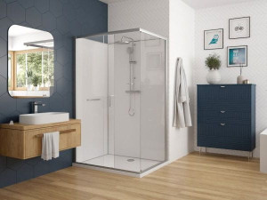 Стеклянная угловая душевая кабина с раздвижной дверью