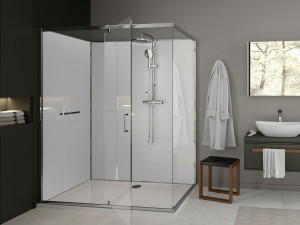 Стеклянная нишевая душевая кабина с пластиной