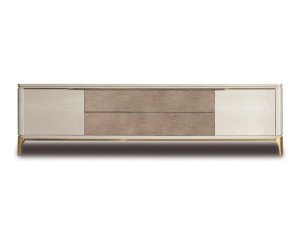 Деревянный и кожаный шкаф для телевизора с выдвижными ящиками и распашными дверцами