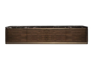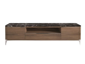 Деревянный и мраморный шкаф для телевизора с ящиками и кожаными вставками