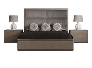 Деревянная двуспальная кровать с высоким изголовьем