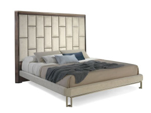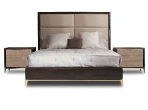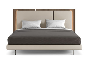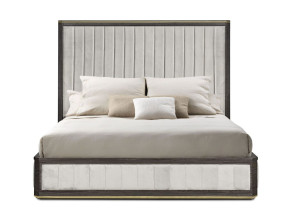 Двуспальная кровать из ткани с высоким изголовьем