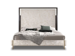 Деревянная двуспальная кровать со встроенным освещением