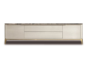 Деревянный и мраморный шкаф для телевизора с ящиками и кожаными вставками