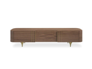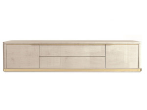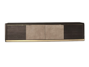 Деревянный низкий ТВ-шкаф с кожаными вставками