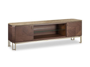 Шкаф для телевизора из дерева и мрамора с распашными дверцами и кожаными вставками