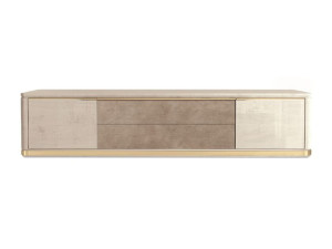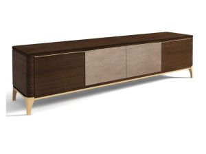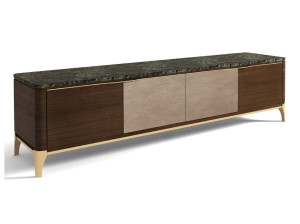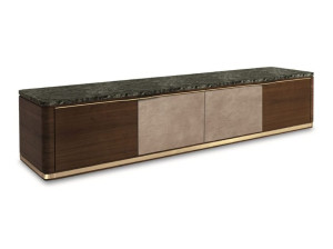 Низкий телевизор из дерева и мрамора с кожаными вставками