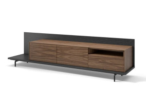 Деревянный шкаф для телевизора с ящиками и кожаными вставками