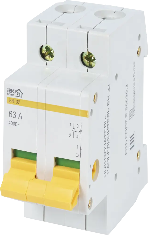Выключатель нагрузки IEK ВН-32 2Р 32А для безопасного управления электросетью 12461699