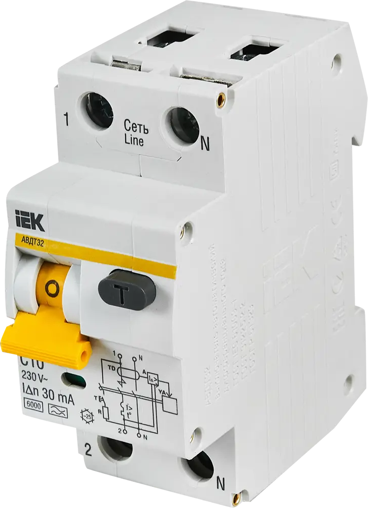 Автоматический выключатель IEK АВДТ 32 C10 - защита от поражения током 11875785
