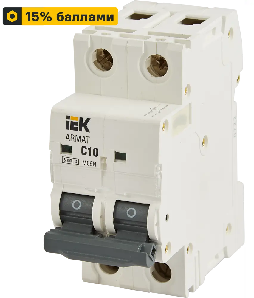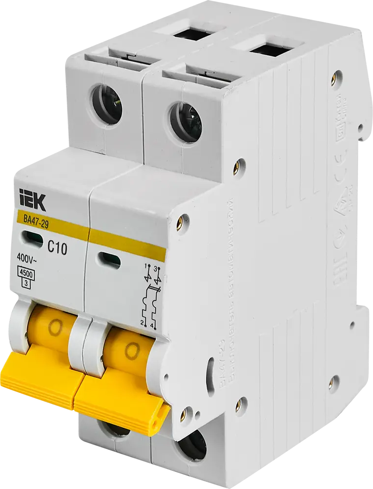 Автоматический выключатель IEK двухполюсный 10А с защитой от перегрузок 11873878
