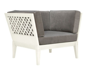 Этрусской мебелью, и отличается структурой из нержавеющей стали, окрашенной в белый вермут, сланец или тосканский коричневый цвет. В коллекции представлен полный ассортимент мебели, от столов до журнальных столиков с прозрачными столешницами из закаленного стекла до сидений. Среди последних, покрытых роскошными подушками, обтянутыми тканью, выделяются своей элегантностью садовый диван Amalfi и садовое кресло Amalfi, увенчанное балдахином с легкой драпированной тканью. Серия садовой мебели Arbor, вдохновленная колониальным стилем, включает столы, журнальные столики и буфеты из тика, к которым добавлены сиденья, характеризующиеся структурой из JANUSfiber, синтетического волокна ручной работы, 100% перерабатываемого и устойчивого к УФ-лучам и пятна.