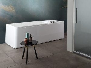 Прямоугольная ванна в центре комнаты с джакузи