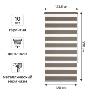 Рулонная штора день-ночь KREAFORTA Novosiberia 120x230 см бежевая с полосками 89408657