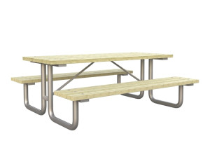 Прямоугольный стол для пикника из сосны со встроенными скамейками