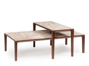Низкий квадратный стол из дерева и мрамора Dark Emperador