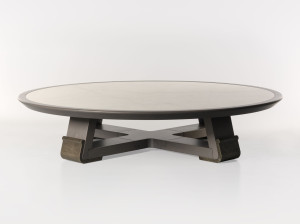 Кожаный овальный низкий журнальный столик