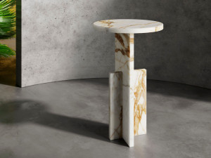 Высокий круглый журнальный столик из мрамора Calacatta Oro