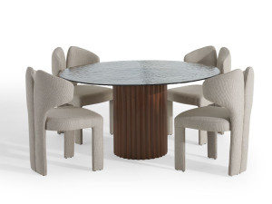 Круглый деревянный обеденный стол со стеклянной столешницей