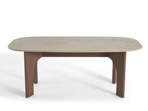 Деревянный прямоугольный журнальный столик с травертиновой столешницей