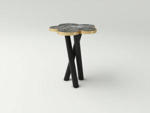 Круглый журнальный столик из дуба и латуни