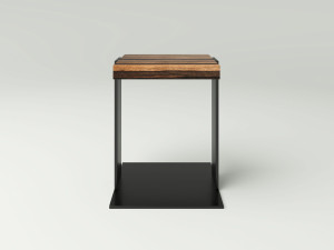 Журнальный столик из стали, дуба и камня