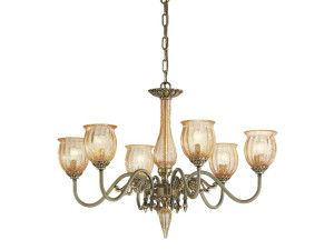Люстра из матовой латуни с янтарным стеклом