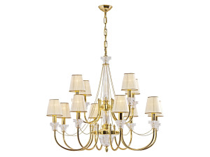 Золотая люстра с кристаллами и абажурами