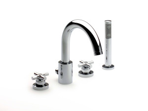 Набор для ванны с 4 отверстиями из хромированной латуни с ручным душем