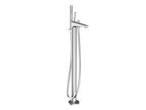 A5A2790C00 Смеситель напольный однорычажный для ванны с автоматическим переключателем, ручным душем, шарнирной опорой, вертикальными подводящими колоннами и шлангом 1,70 м. ROCA Atlas