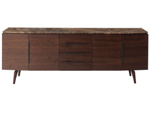Шкаф с деревянными дверцами и ящиками и мраморной столешницей