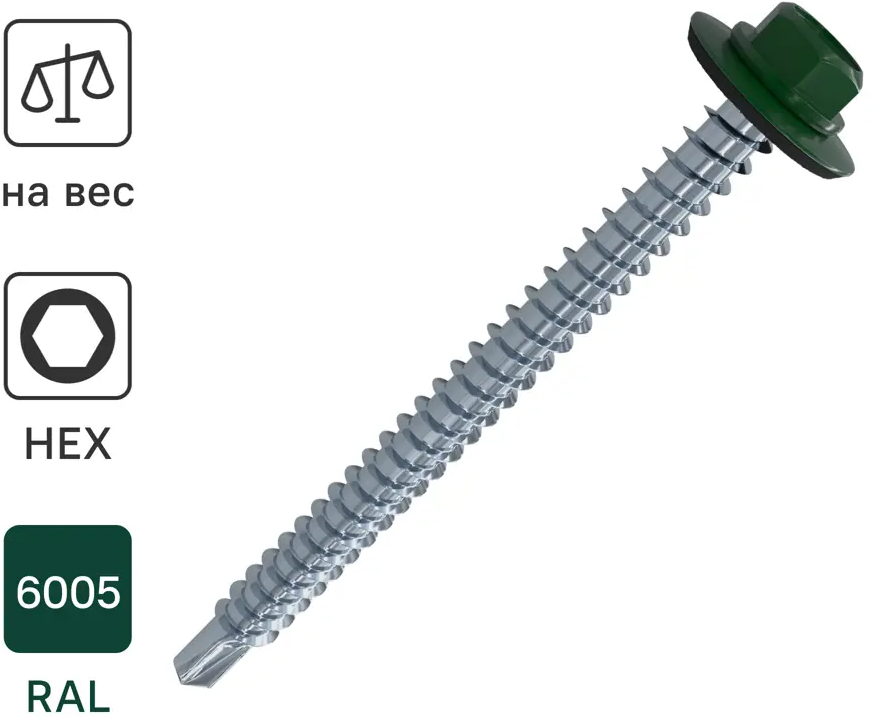 STANDERS Кровельные саморезы с пресс-шайбой для металла RAL6005 5.5×32 мм 89213067