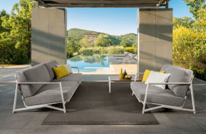 Panama, состоящую из стульев, шезлонгов, шезлонгов, пуфов и диванов, отличающихся большими формами и чьи переплетения создают тени, вдохновленные движением пальм, перемещаемых морским бризом. Основная тема коллекции Cleo Alu - создание молодого и динамичного продукта, рожденного желанием экспериментировать с новыми комбинациями метрик; В этой коллекции легкость алюминия сочетается с современностью бетонных поверхностей и элегантностью тканевых покрытий, создавая изделия, которые адаптируются к любому внешнему пространству.