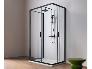 Душевая кабина из алюминия и стекла с раздвижной дверью