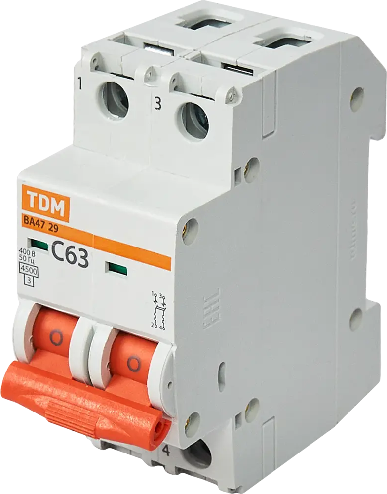 Автоматический выключатель TDM Electric ВА47-29 2P 63А для защиты электросети 84399497