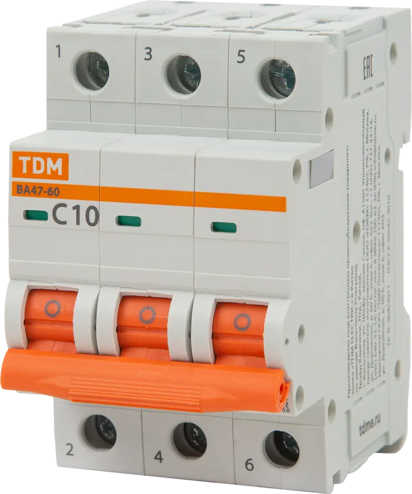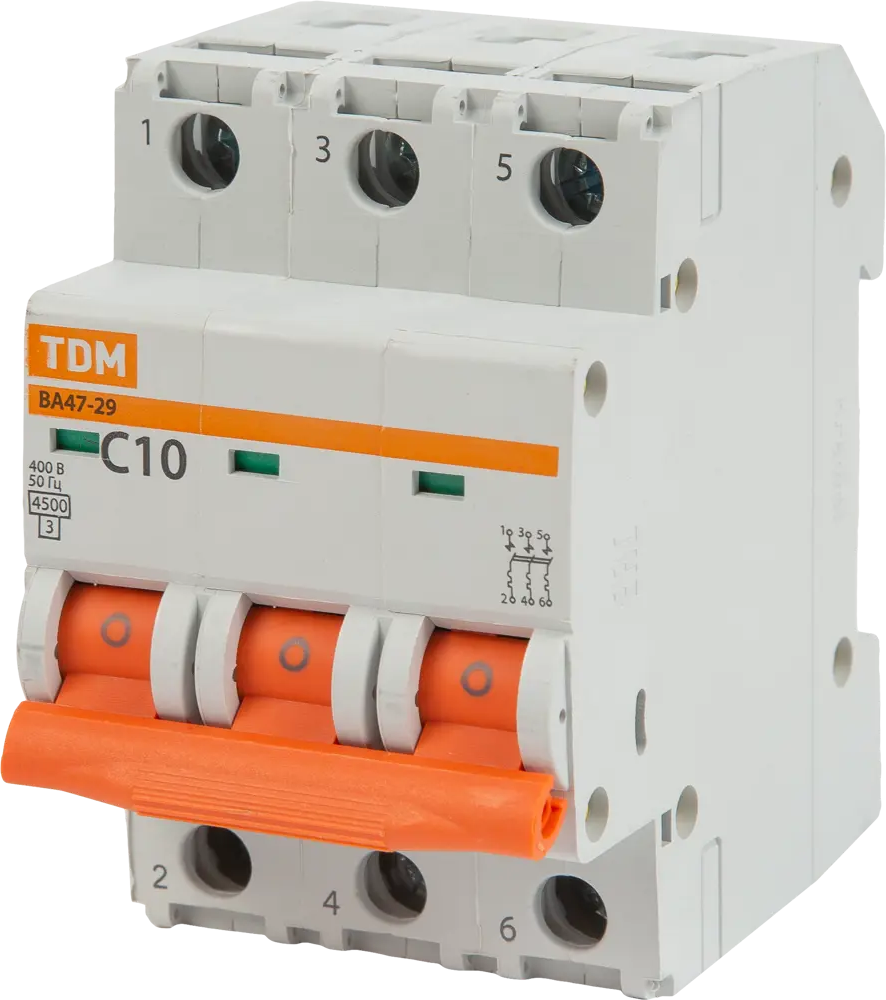 Автоматический выключатель TDM Electric 3-полюсный 10А для защиты от перегрузок 84399538