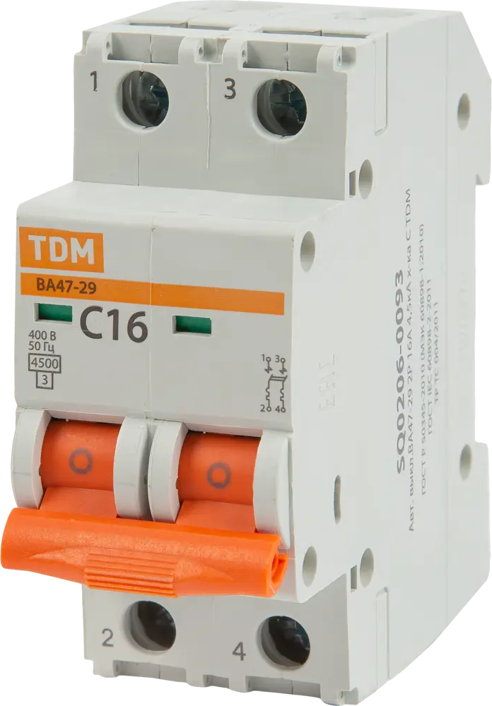 Автоматический выключатель TDM Electric ВА47-29 16А для защиты электросетей 84399473