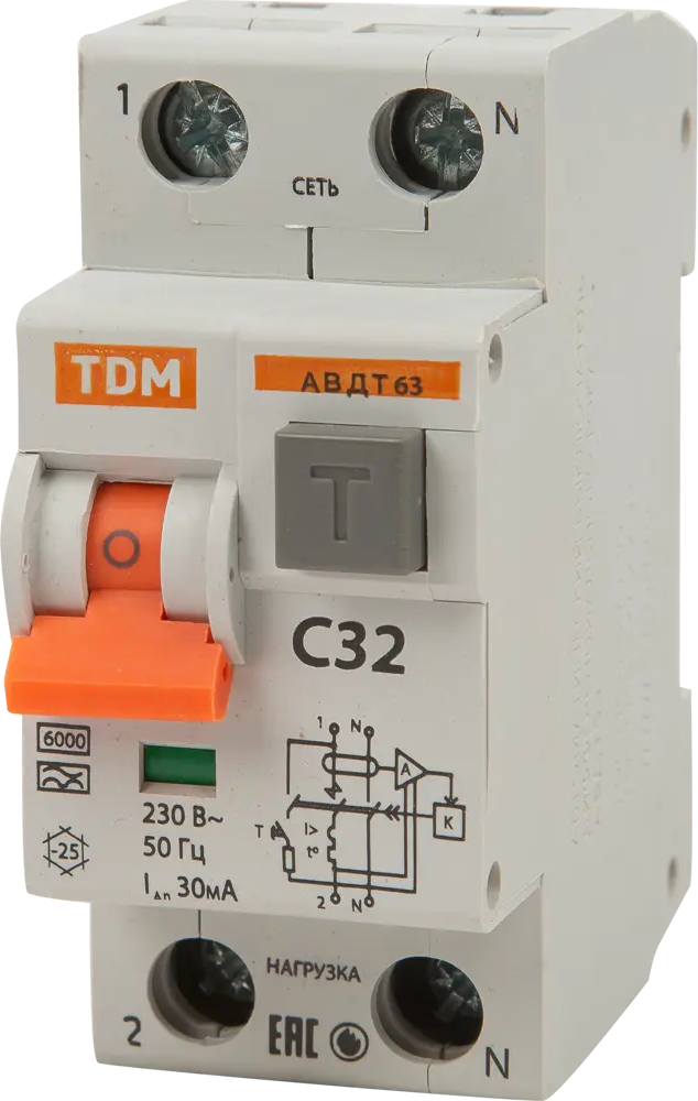 Дифференциальный автомат TDM ELECTRIC АВДТ-32 для защиты от токов утечки 84826421