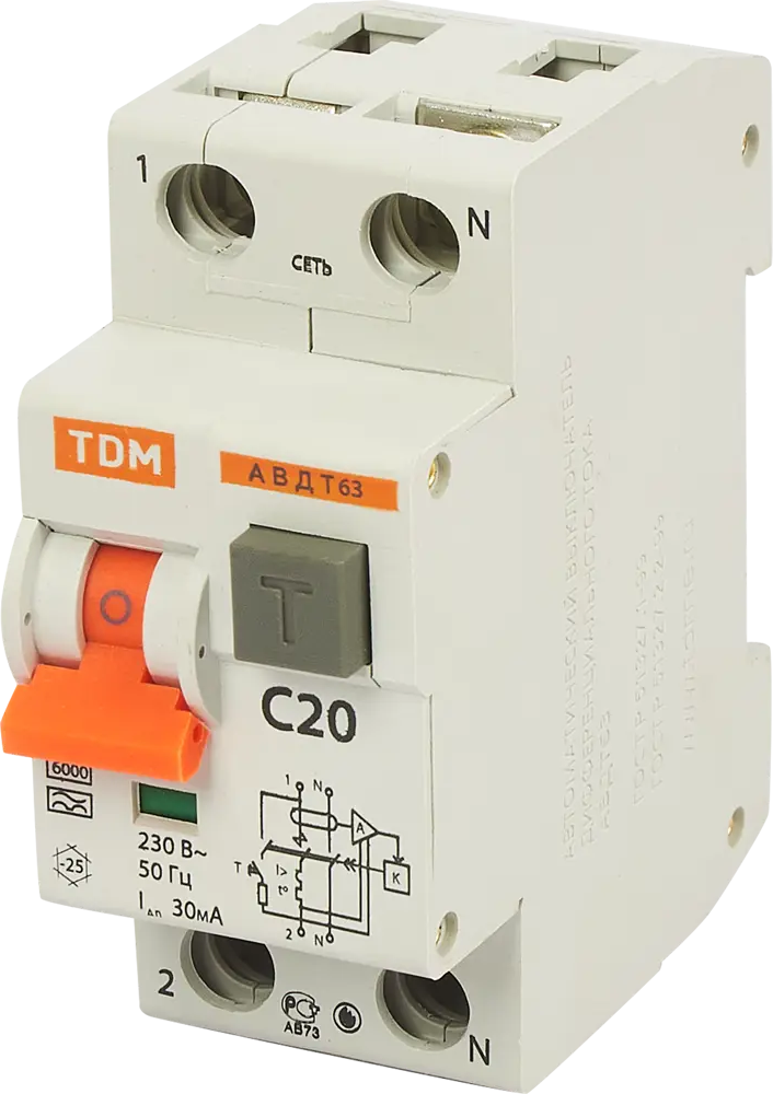 Дифференциальный автомат TDM Electric АД-2 с защитой от токов утечки 89347137