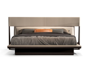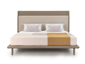 Двуспальная кровать из ткани и кожи с мягким изголовьем